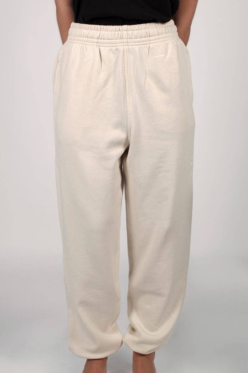 Este jogger oversize está confeccionado con algodón 100% orgánico, cultivado sin pesticidas ni fertilizantes, cuidando el agua, el suelo y también tu piel. Tiene un corte holgado, cintura elástica y puños ajustados, lo que lo hace especialmente cómodo para el día a día.