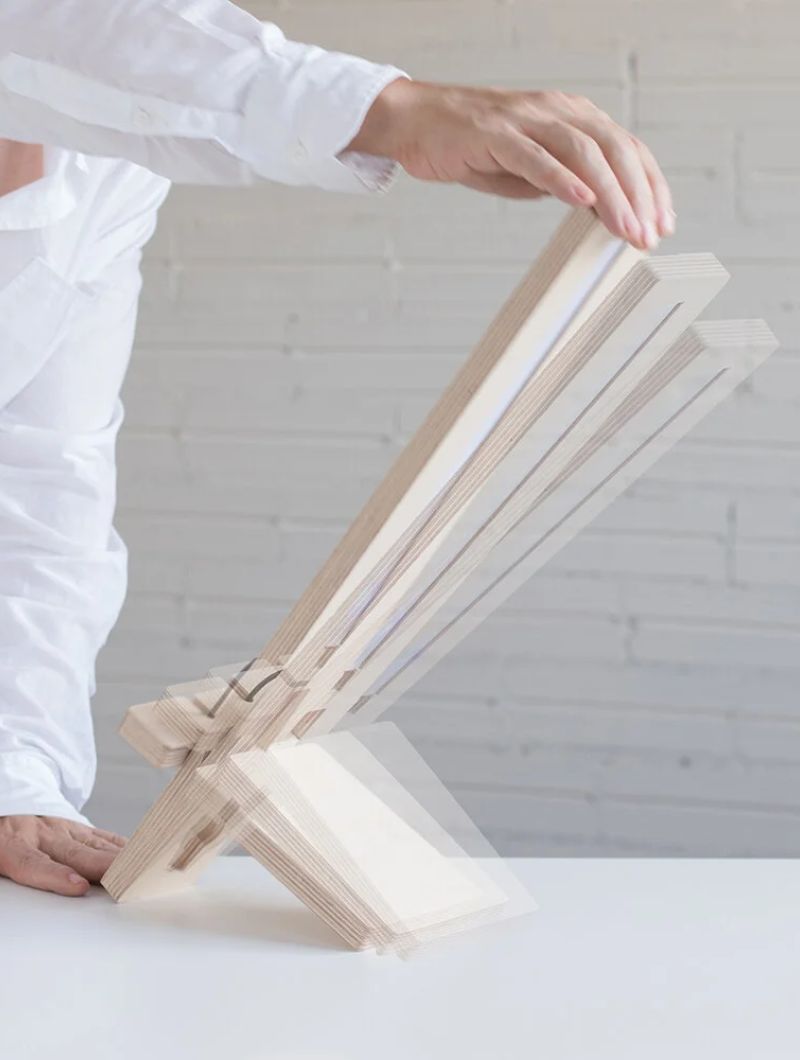 El acabado natural del abedul aporta un toque orgánico al escritorio o a la mesilla, y su diseño minimalista encaja bien en espacios de trabajo o lectura.