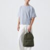 Inspirada en las mochilas de estilo tradicional, esta versión combina comodidad, seguridad y sostenibilidad. Sus asas de algodón con cierre de botón facilitan el transporte y aportan un extra de protección. El amplio compartimento principal incluye una funda acolchada para portátiles de hasta 14”, varios organizadores para objetos pequeños y un bolsillo especial para botellas.