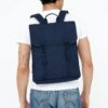 Esta mochila combina funcionalidad, sostenibilidad y un diseño atemporal. Su forma cuadrada y su solapa superior con bolsillo de acceso rápido le dan un aire moderno y práctico.