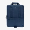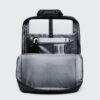 Mochila de formato compacto con dos compartimentos separados: uno con varios bolsillos y organizadores de malla para accesorios, y otro más amplio con un bolsillo acolchado para portátiles de hasta 13,6” u otros dispositivos electrónicos.