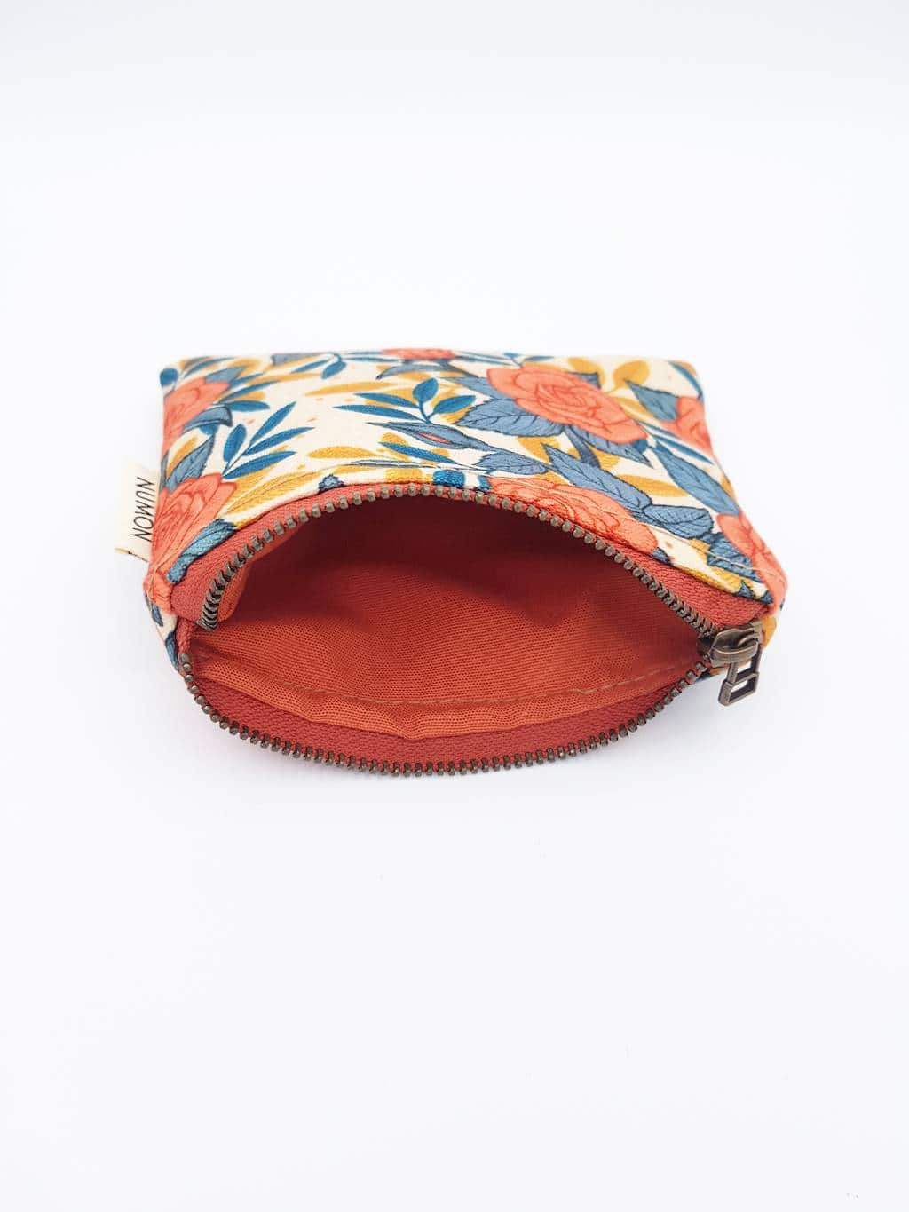 El monedero cremallera estampado de flores ha sido fabricado a mano en España con cariño y respeto.