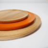 - Plato mediano (ø16 cm): grosor 10 mm, peso 95 gr, madera de abedul, acabado naranja.