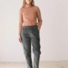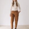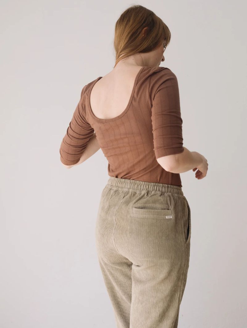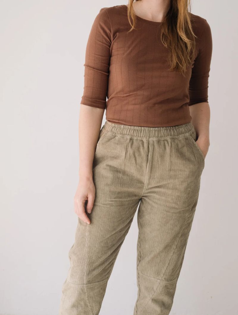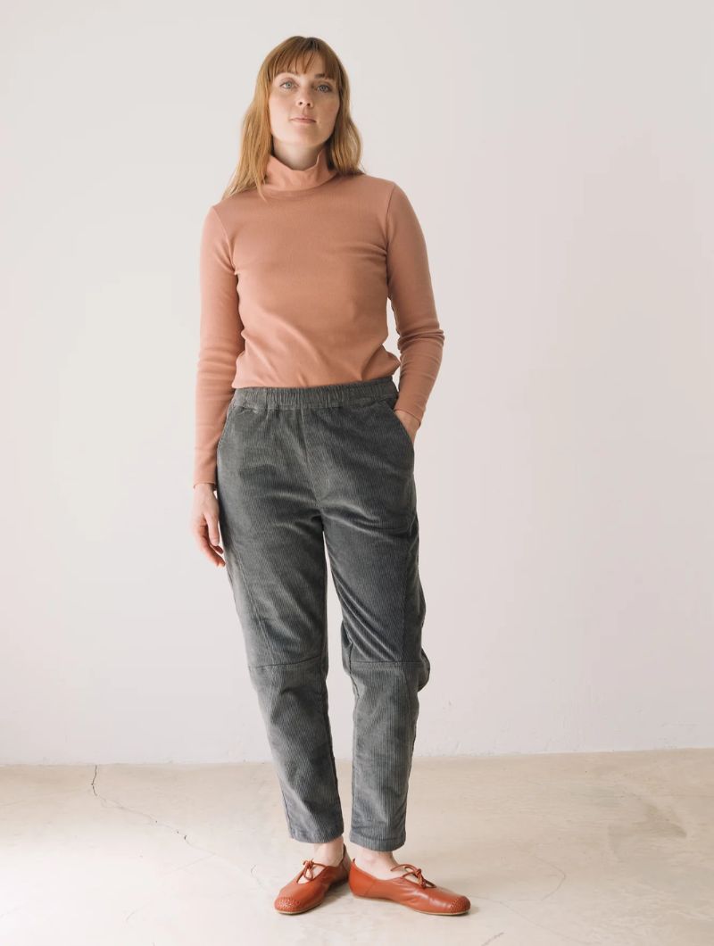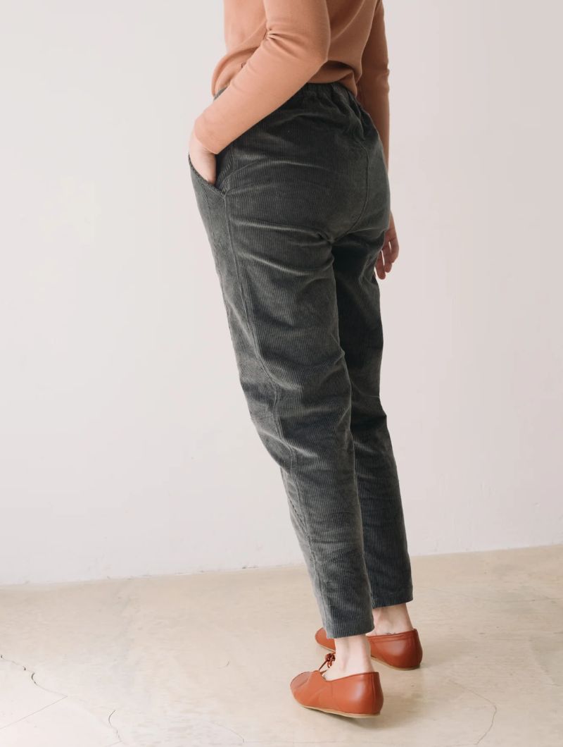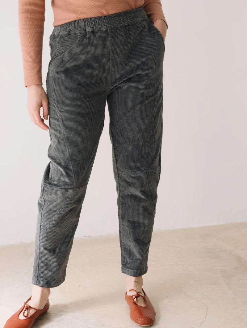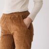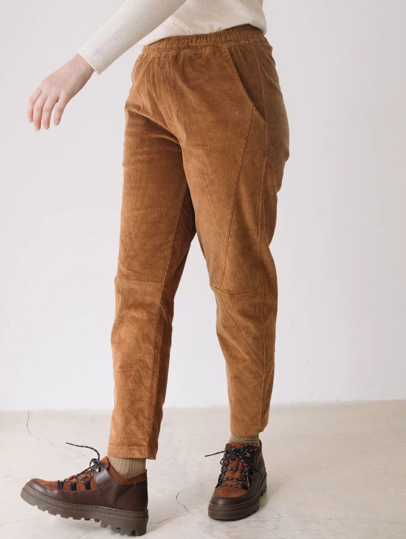 Pantalón de pana gruesa con cintura elástica, bolsillos laterales y costuras delanteras que dan estructura sin perder comodidad. Su corte relajado y la cintura elástica aportan comodidad y libertad de movimiento, manteniendo un estilo cuidado y versátil.