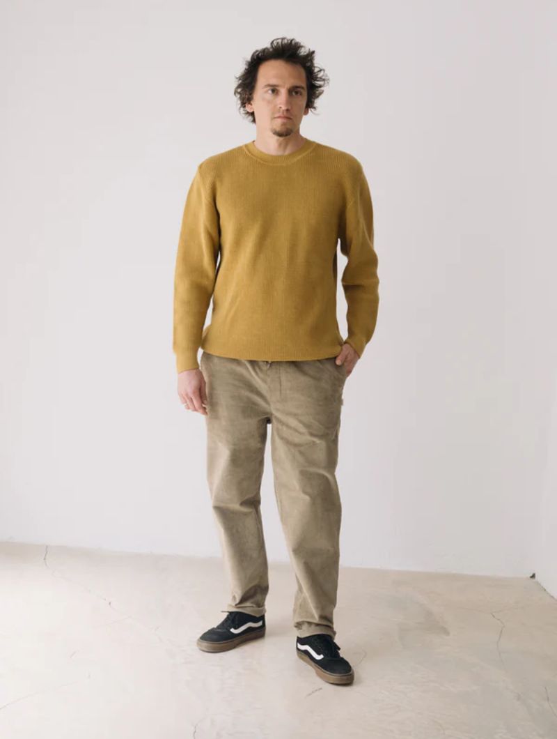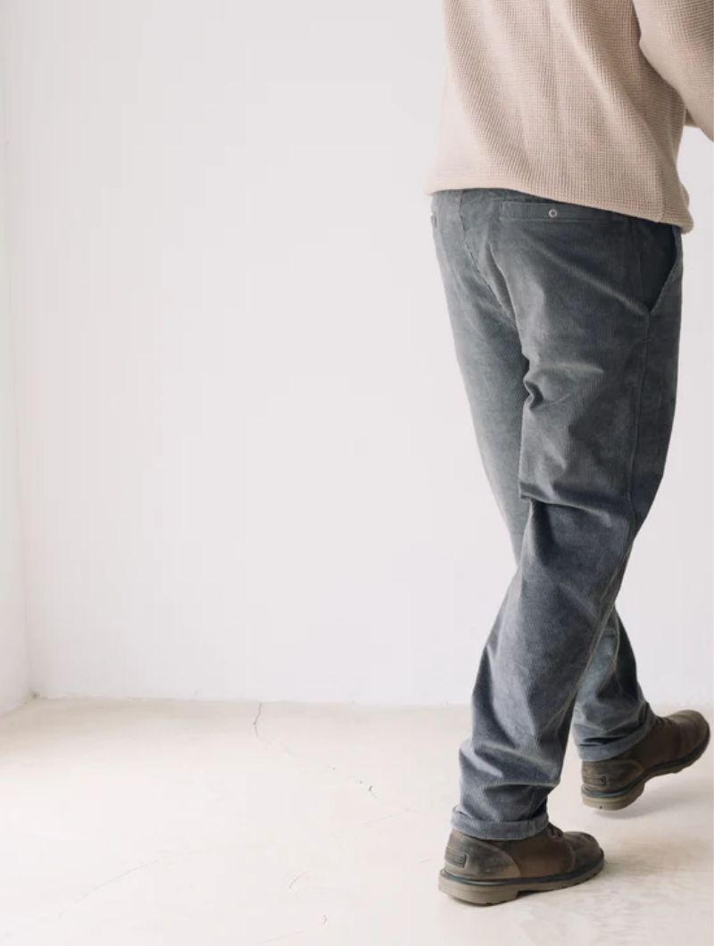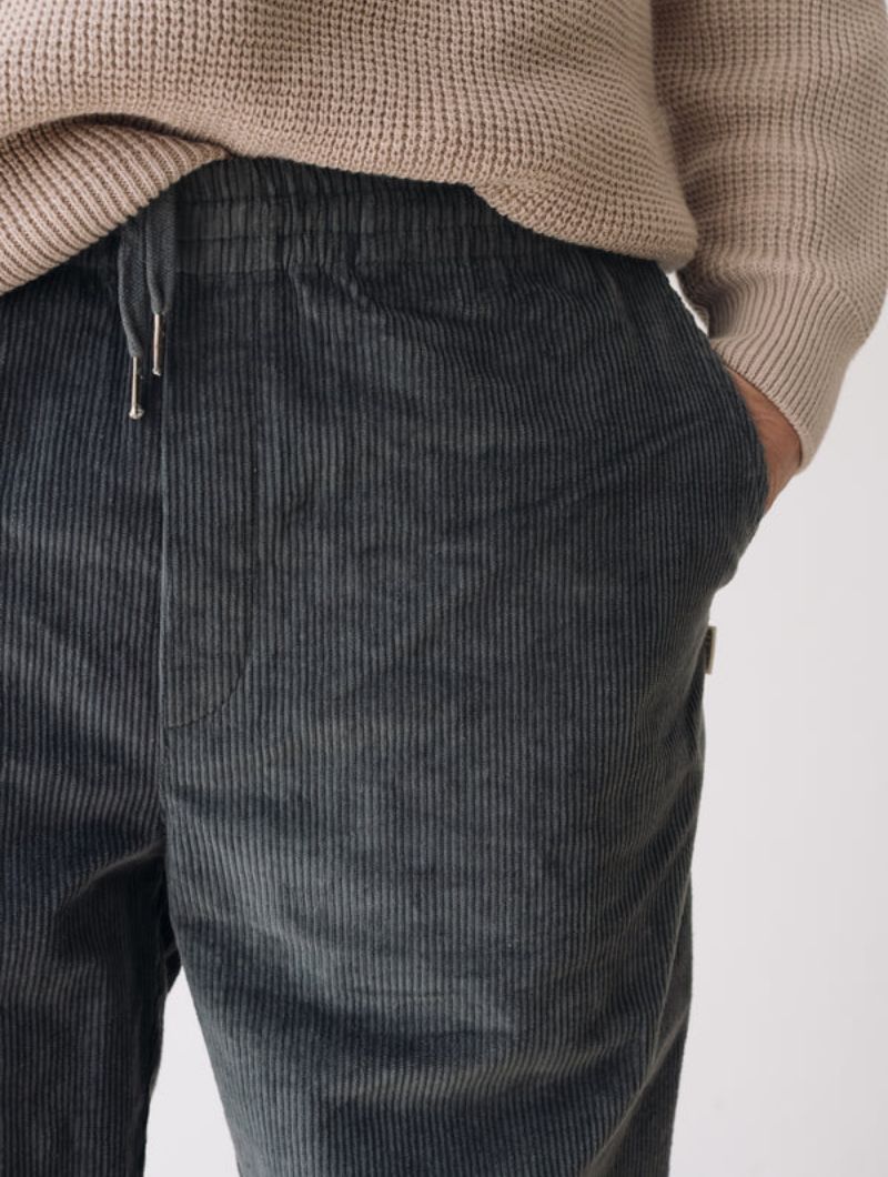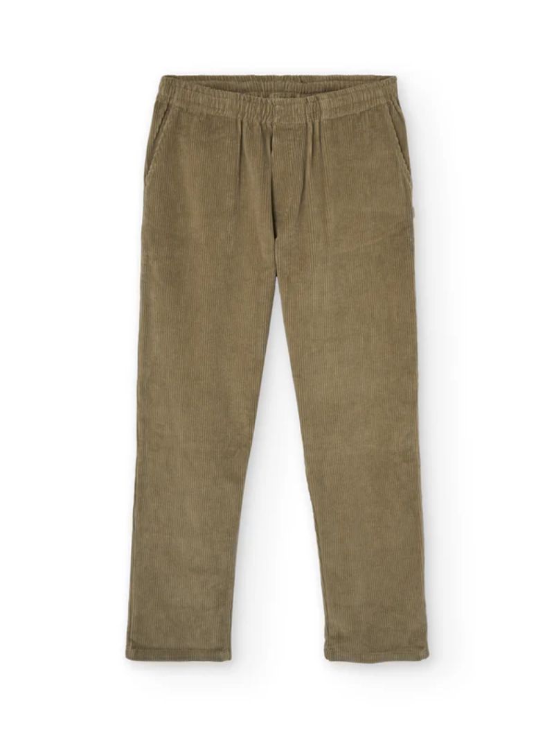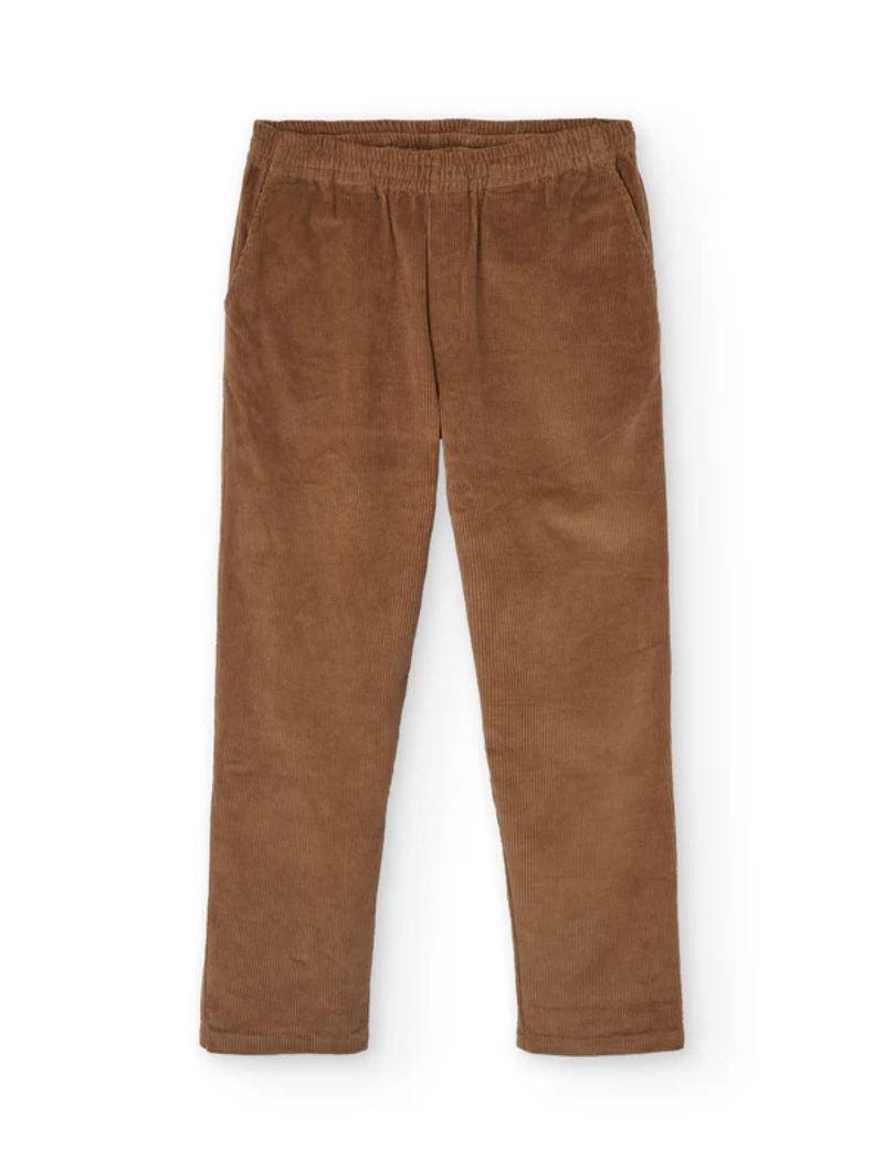 Pantalón de pana gruesa confeccionado en 95% algodón orgánico certificado GOTS y un 5% de elastán, que aporta flexibilidad y comodidad. El tejido, de 300 g/m², es suave, resistente y cálido, ideal para los meses fríos.