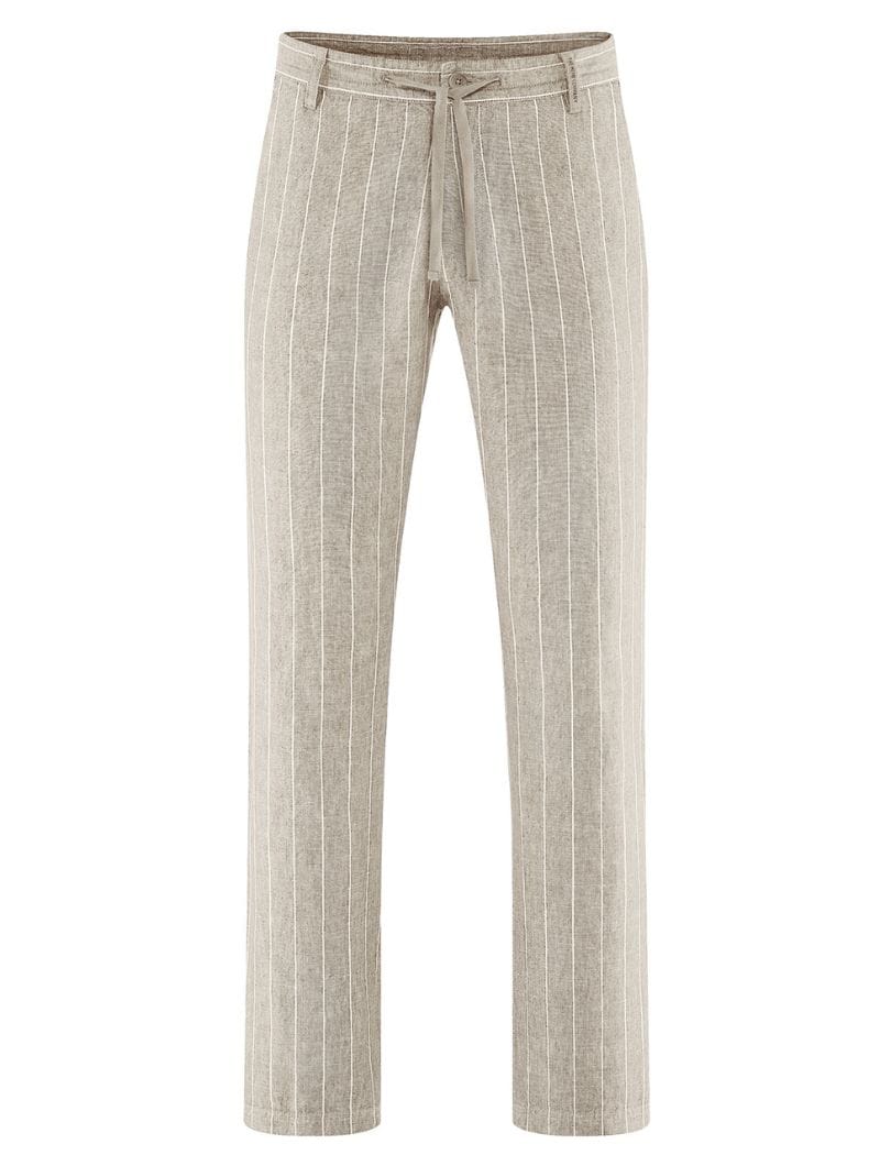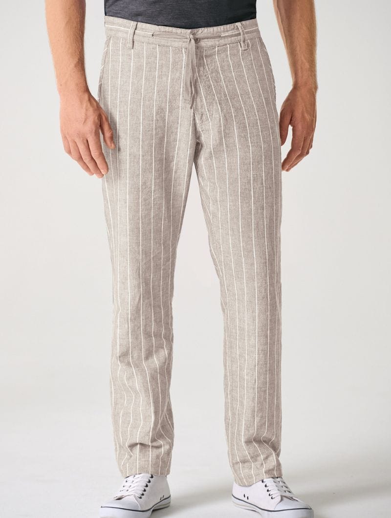 Pantalones largos de raya diplomática con cintura ajustable y bolsillos.