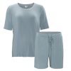 Pijama corto para mujer confeccionado en una mezcla de modal con un pequeño porcentaje de elastano, pensada para dar caída, suavidad y libertad de movimiento.