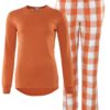 El pijama cuadros naranja de manga larga ecológico es un conjunto ideal para las noches de invierno.