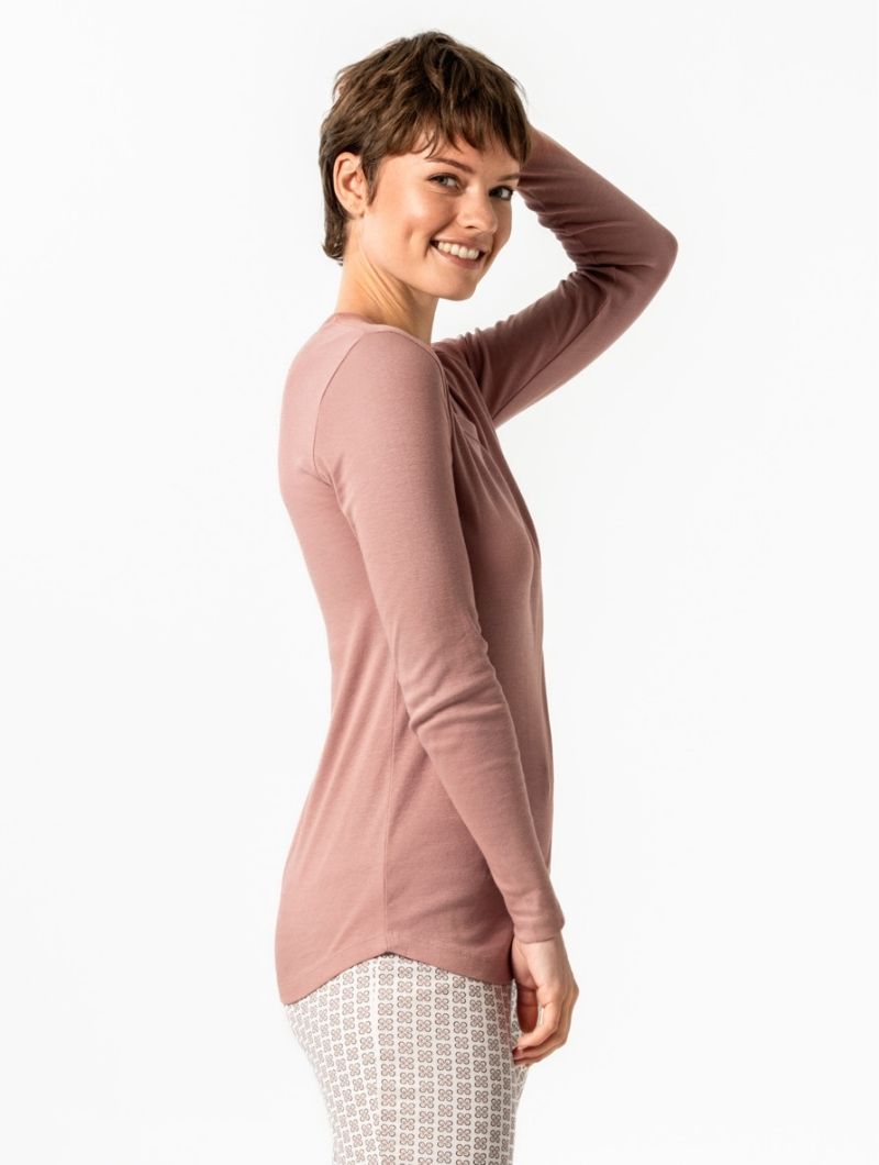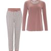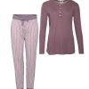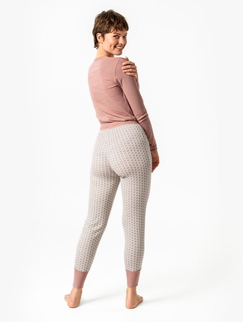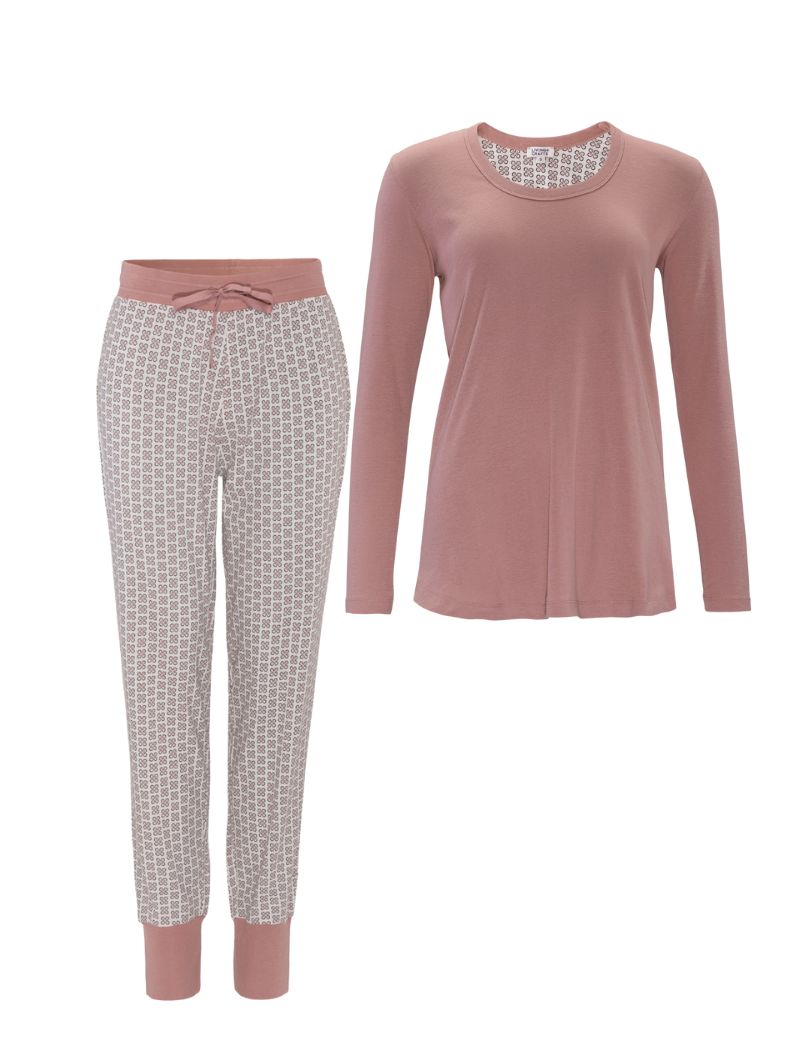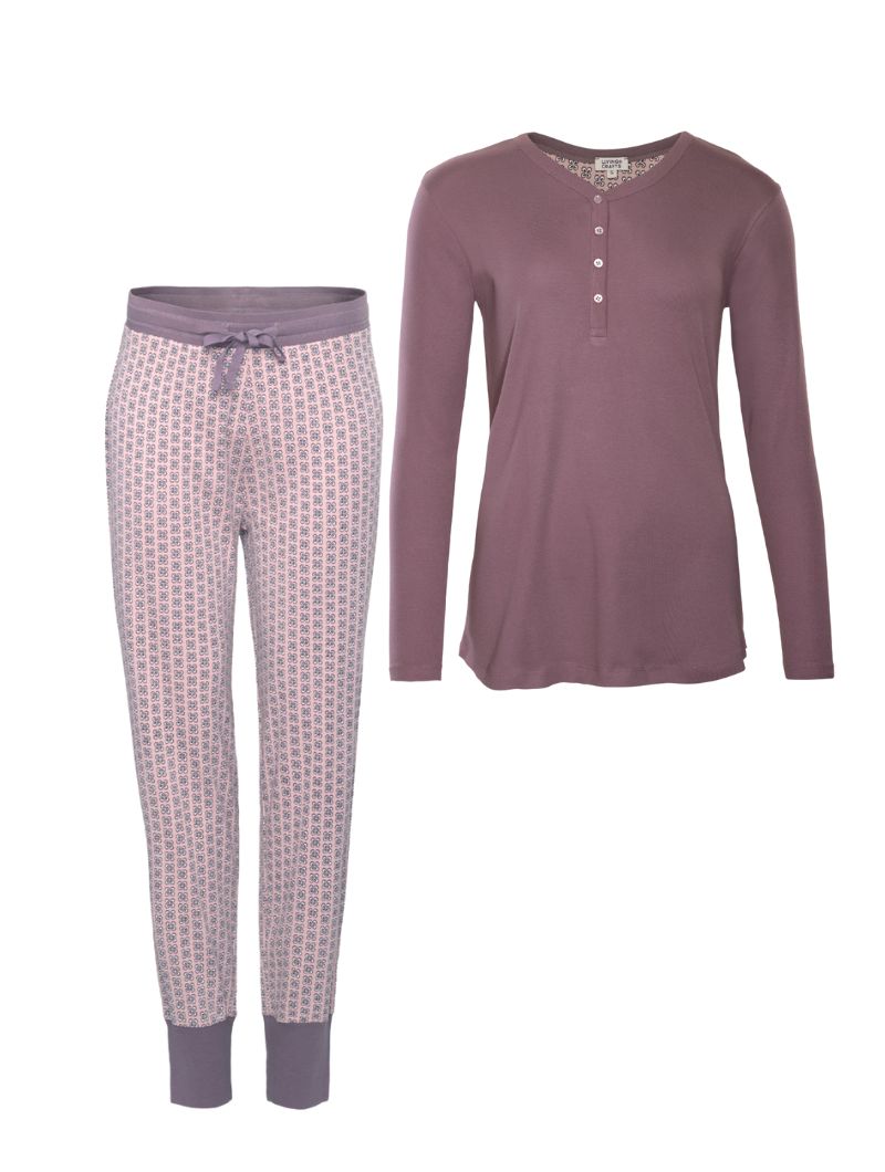 Pijama largo mujer de algodón orgánico malva con diseño geométrico.