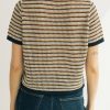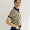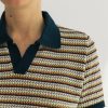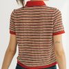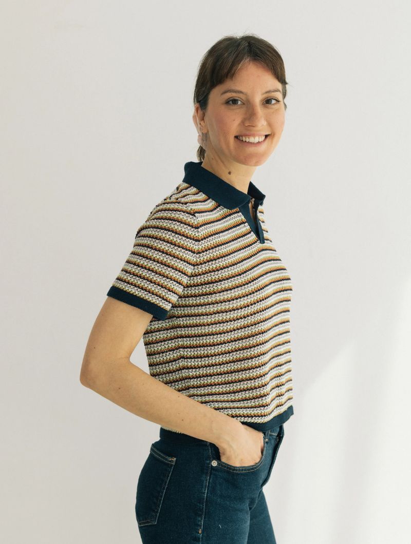 Polo de punto de manga corta con diseño de rayas horizontales y estructura calada que aporta textura y ligereza. El patrón combina líneas finas en varios tonos, creando un efecto visual dinámico sin perder equilibrio.