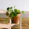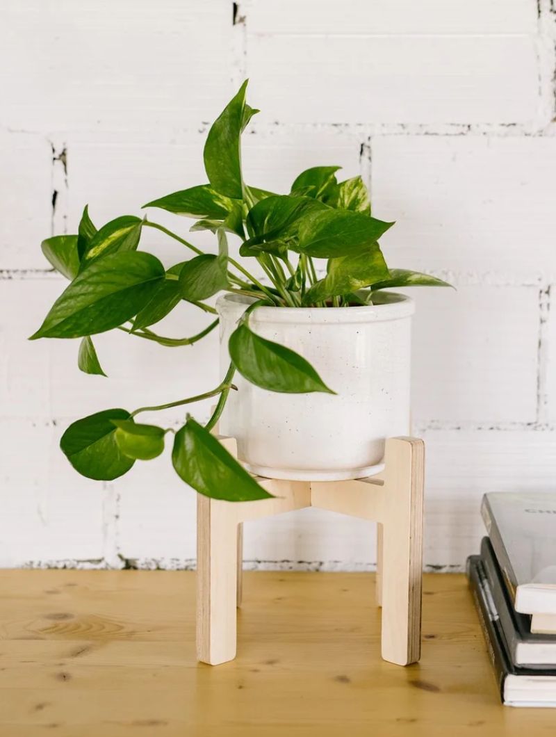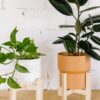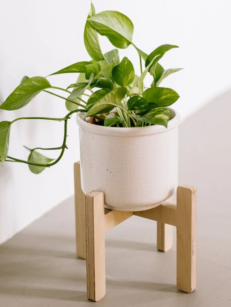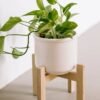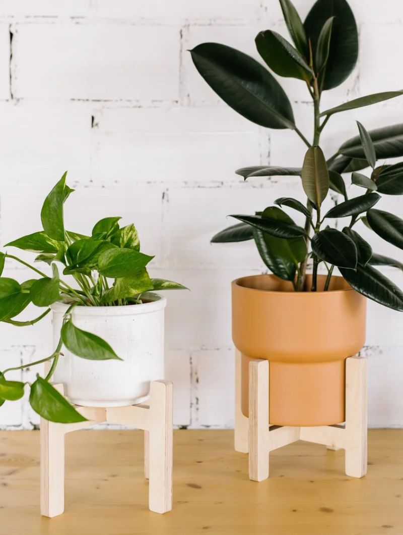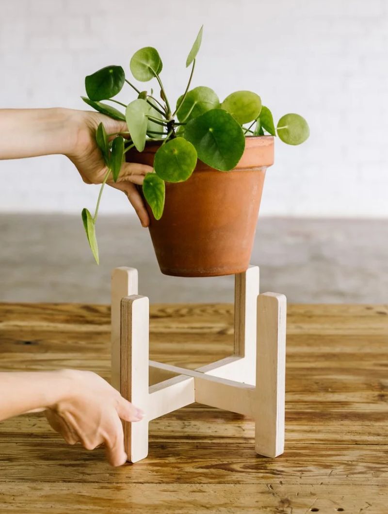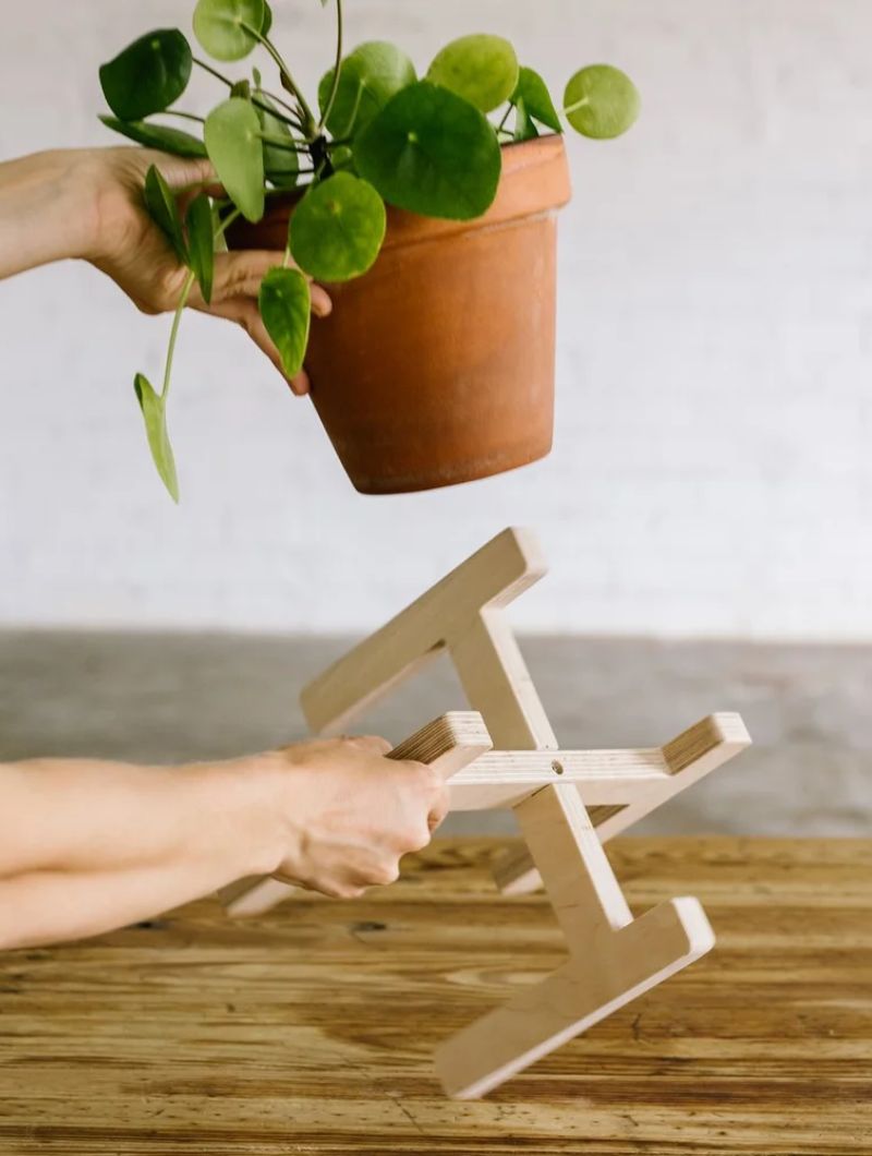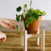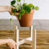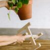 Soporte de madera pensado para levantar las macetas y destacar las plantas dentro de casa. Permite colocarlas a dos alturas distintas —7 o 14 cm— y se monta en segundos sin necesidad de herramientas.