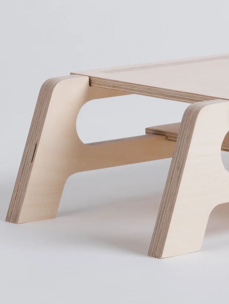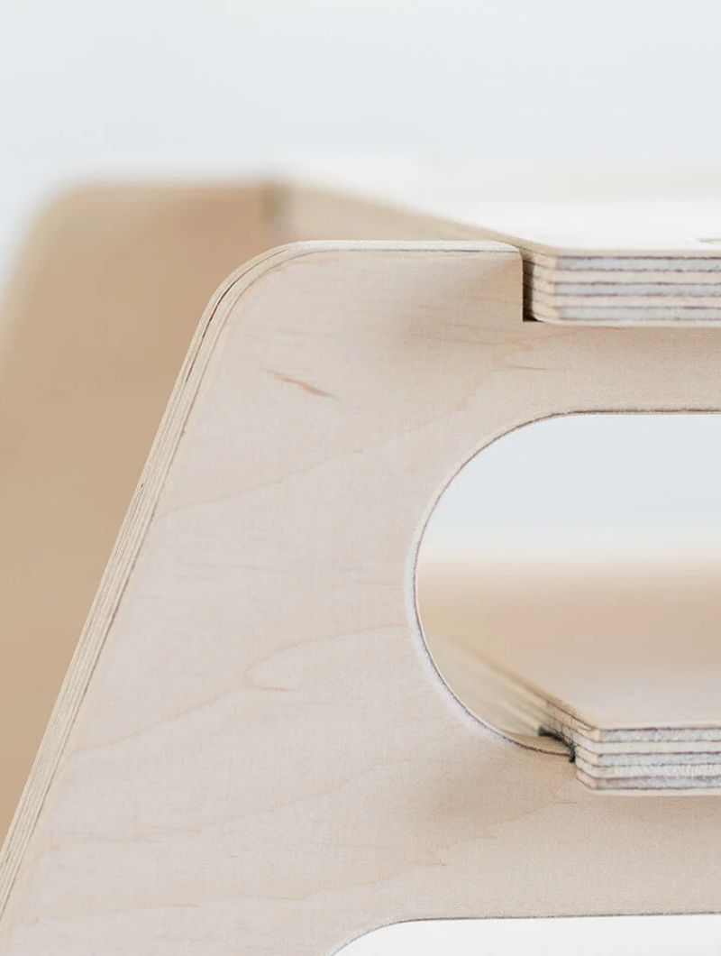 Fabricado en contrachapado de abedul natural, sin tratar, con piezas de 9 y 18 mm de grosor. La madera tiene un tacto cálido y con el tiempo adquiere un tono más dorado.