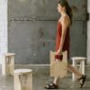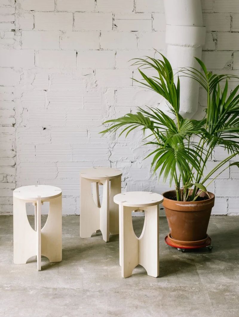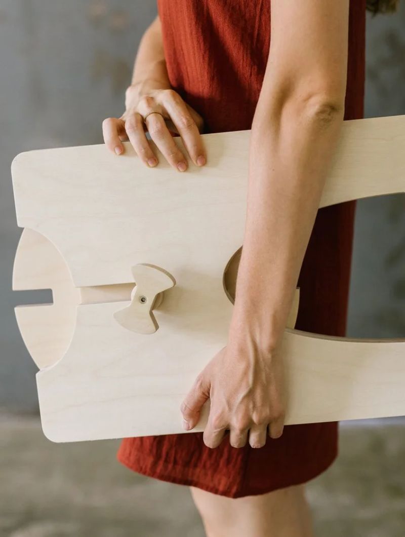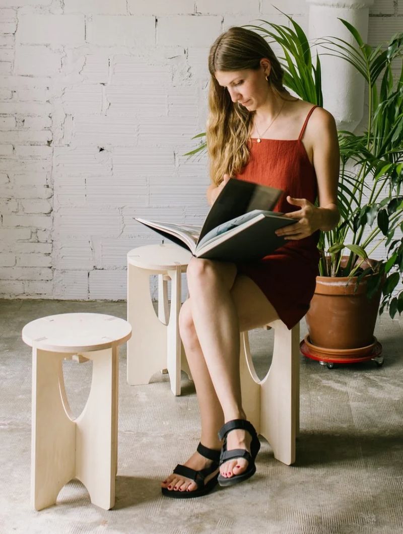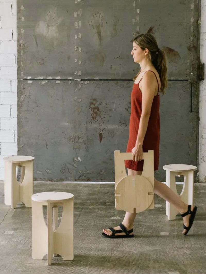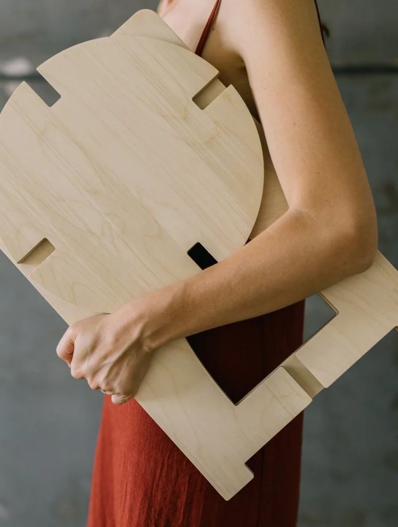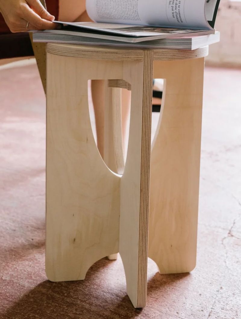 Taburete de madera pensado para acompañar el día a día con la misma facilidad con la que se guarda o se mueve. Se monta y desmonta sin herramientas, lo que permite almacenarlo sin ocupar espacio o transportarlo cómodamente.