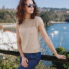 El top de punto calado en color arena de ROADE es la mezcla perfecta de estilo y sostenibilidad.