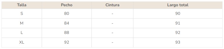 Si buscas un ajuste más amplio y relajado, puedes optar por la talla superior. Si prefieres que la prenda quede más ajustada al cuerpo, elige la talla inferior.