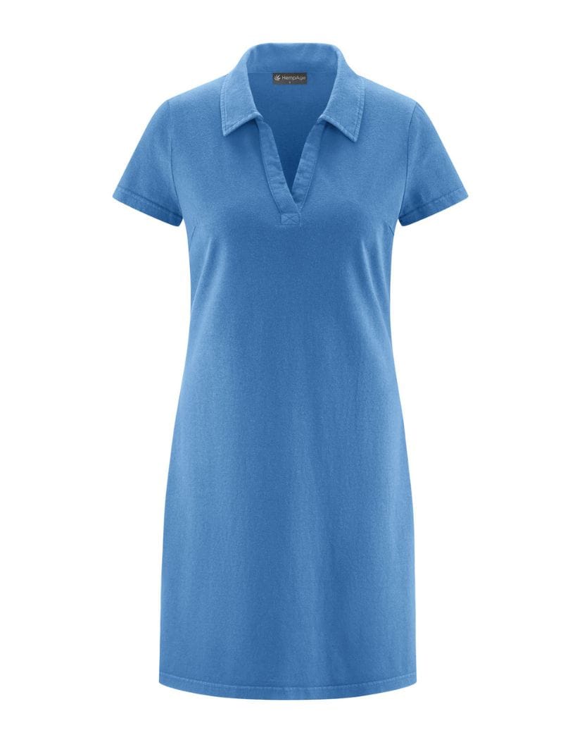 Vestido polo de manga corta para mujer, confeccionado con una suave mezcla de algodón orgánico y cáñamo.