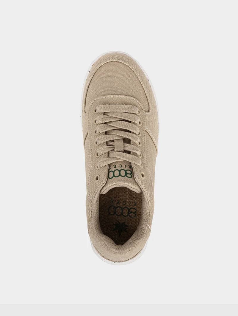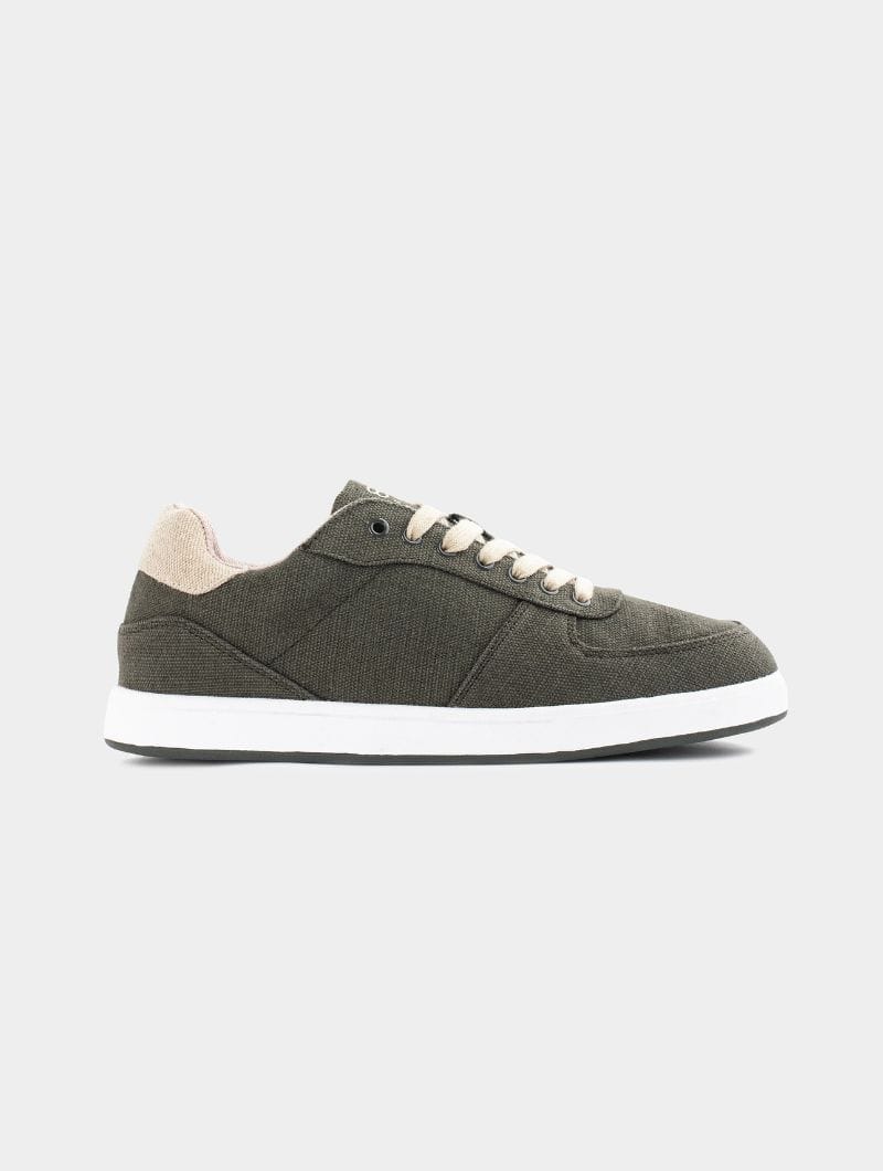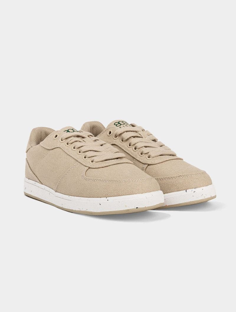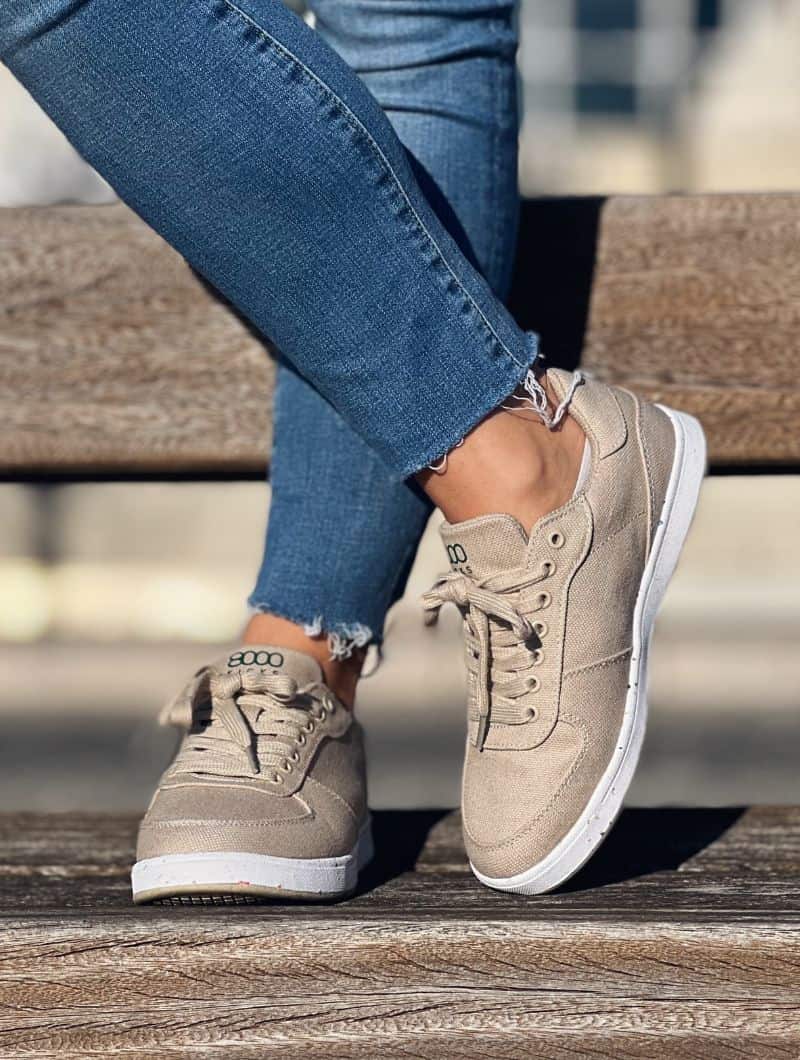 Zapatillas casual sostenibles confeccionadas con tejido de cáñamo, un material natural, resistente y transpirable. Cuentan con una suela reciclada con motas y una plantilla exclusiva de cáñamo, antibacteriana y antiolor, que se adapta al pie y lo mantiene seco durante todo el día.