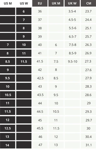 Las tallas de calzado se han fabricado siguiendo estándares internacionales como Nike y Adidas. En caso de duda, elegir la talla más grande.
